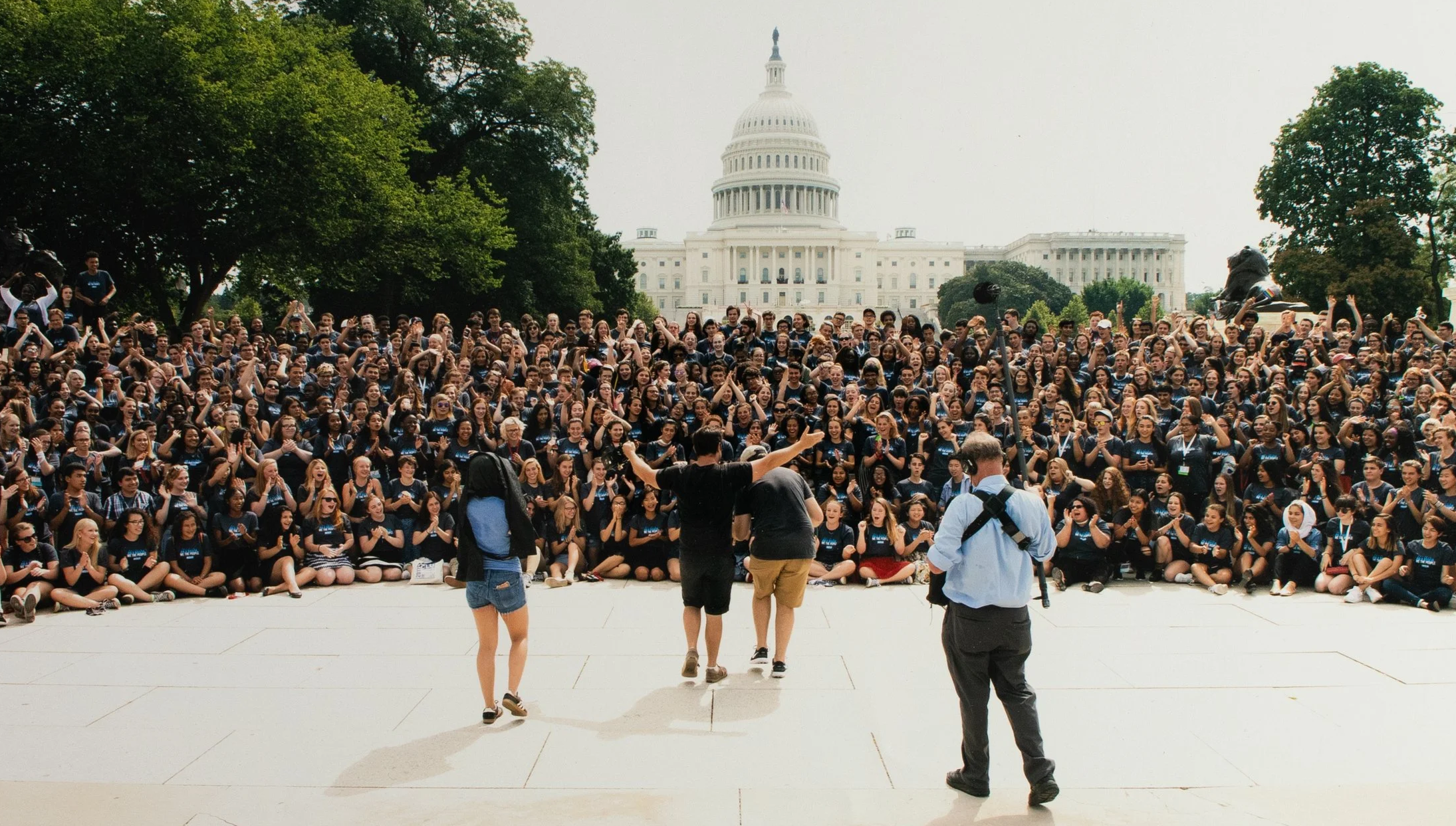 gathered at iconic American landmarks.